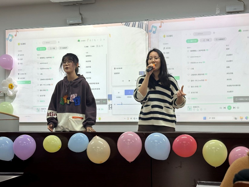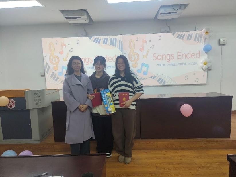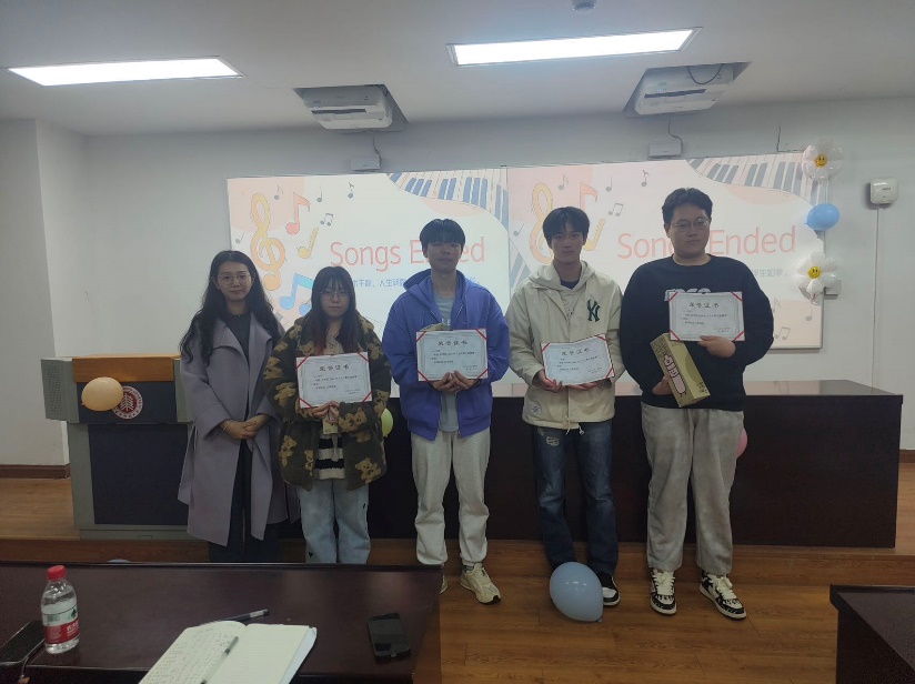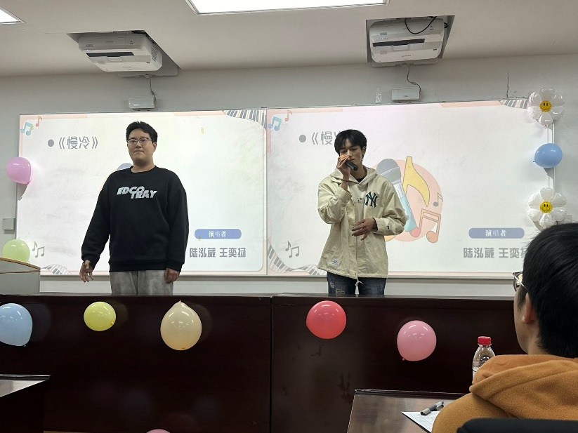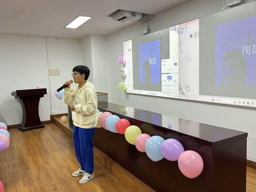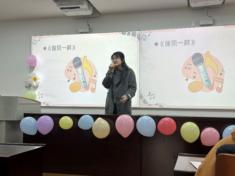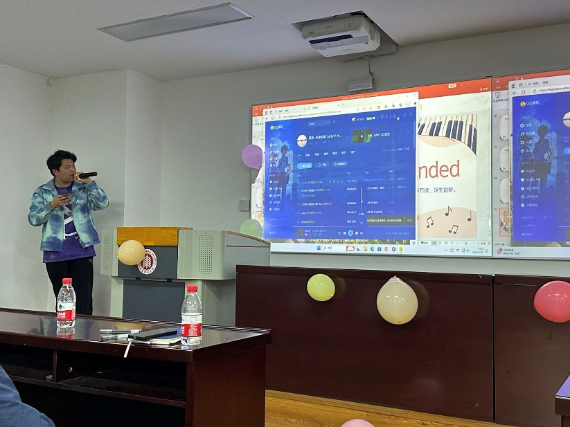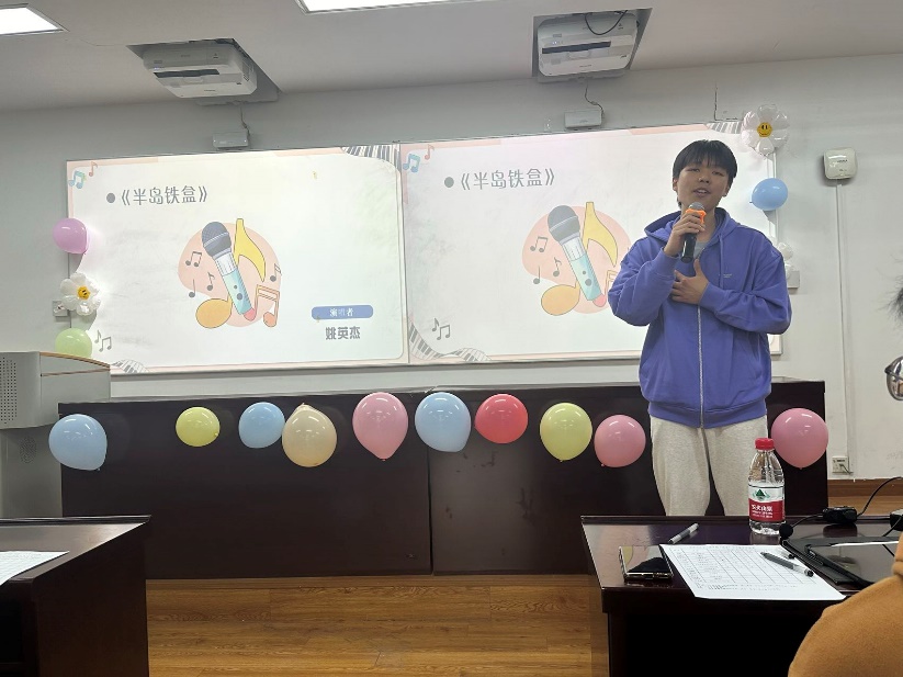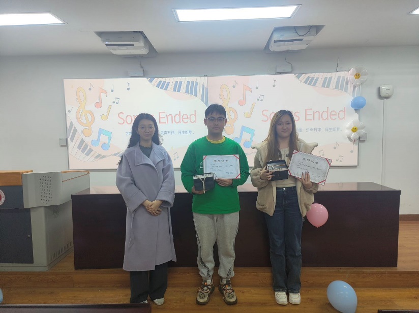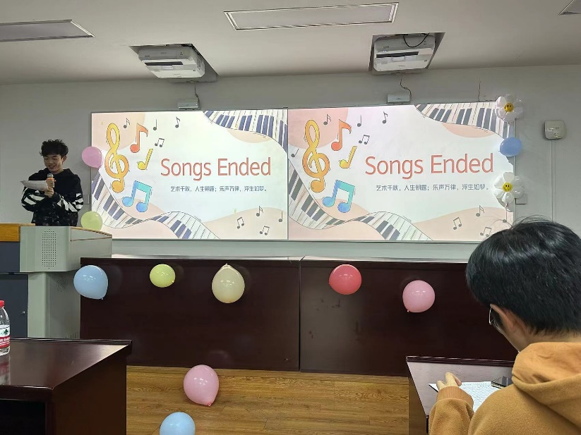 比赛结束后,在等待分数的间隙,主持人用“猜歌识曲”游戏活跃现场气氛,观众们踊跃作答,气氛热烈。柳陈柯雨同学还为现场即兴演唱了一曲《Loser》。
