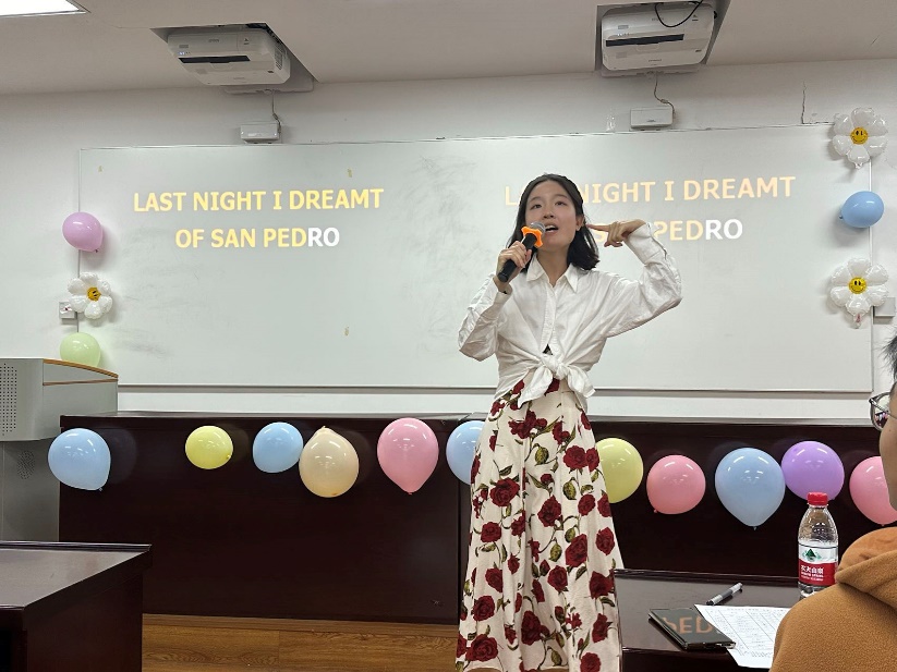 袁思珩同学带来的歌曲《La islaBonita》,歌曲里多种打击器乐的融合让人耳目一新,歌声也显得清脆利落。