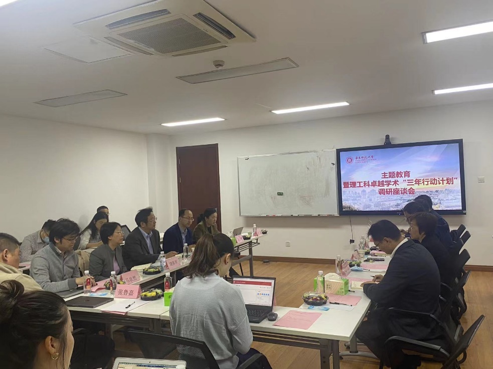为了深入推进学习贯彻习近平新时代中国特色社会主义思想主题教育,更好促进麻豆社 科研工作聚焦国家重大战略,对标卓越学术目标,勇担科技自立自强重任,麻豆社 与科技处于2023年5月8日在闵行校区化学楼128会议室举办了主题教育暨理工科卓越学术“三年行动计划”座谈会。副校长施国跃、科技处和麻豆社 班子成员、麻豆社 教师代表和科技处相关老师与会,会议由院党委书记鲜跃仲主持。