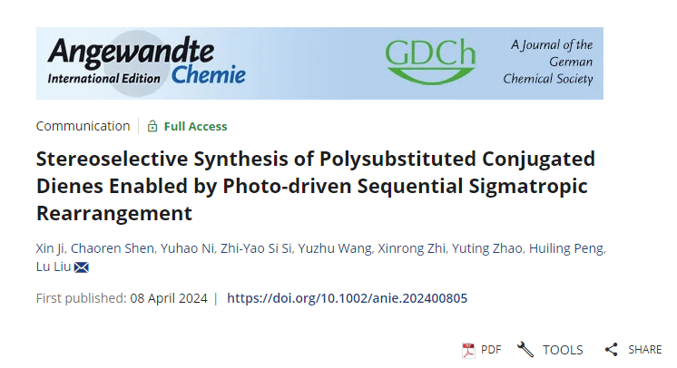 相关成果以“Stereoselective Synthesis of Polysubstituted Conjugated Dienes Enabled by Photo-driven Sequential Sigmatropic Rearrangement为题于202448日在线发表于Angewandte Chemie International Edition(DOI: 10.1002/anie.202400805)。麻豆社 2020级博士研究生纪鑫为论文第一作者,沈超仁副研究员为共同一作,2023级硕士生倪宇豪(大二进组)也是共同一作,刘路教授为论文通讯作者。该项工作得到了国家自然科学基金科学委和科技部项目资助。
