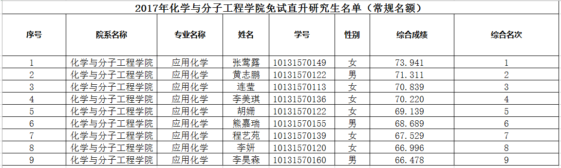 2017年麻豆社 免试直升研究生名单(常规名额)
