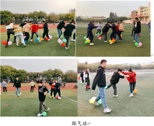 本次趣味运动共设四个项目,分别是“双人跳绳”“两人三足”“袋鼠跳”与“踩气球”,每个项目都旨在考验参与者的运动协调能力和团队合作能力。比赛进行得紧张激烈,大家尽情地享受着运动带来的乐趣,一旁围观的同学也时不时为参赛同学的精彩表现而欢呼喝彩。自始至终,整个运动场充满了欢声笑语,洋溢着青春的朝气。