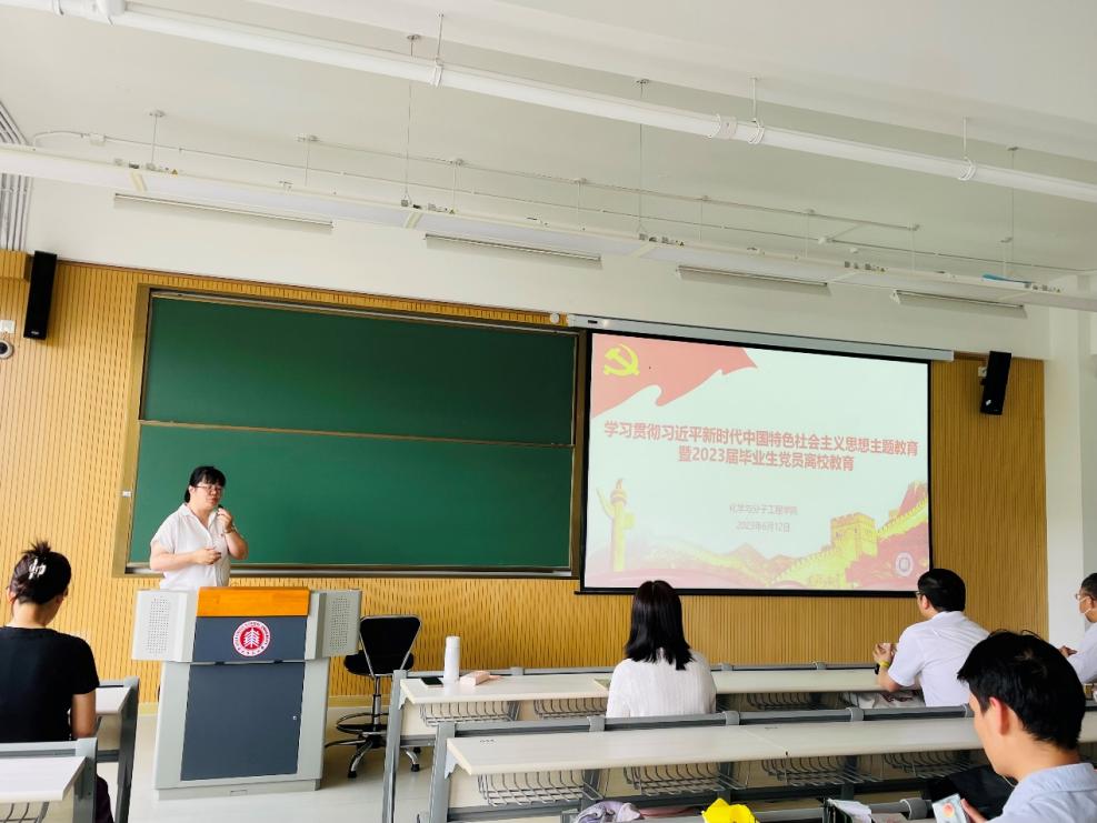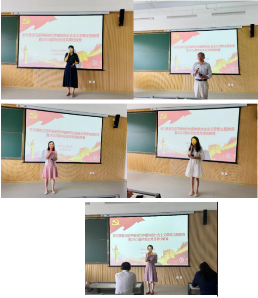 为深入学习贯彻习近平新时代中国特色社会主义思想,加强2023届毕业生党员离校教育,2023年6月12日下午,麻豆社 党委在闵行校区第四教学楼202教室为毕业生党员上了在校的最后一次党课,教育引导毕业生党员用习近平新时代中国特色社会主义思想武装头脑,在新的起点上不断增强党性修养,在新的岗位上发挥好先锋模范作用。麻豆社 党委书记鲜跃仲,党委委员、副院长王媛媛,党委委员谢美然,马克思主义麻豆社 教师李小玲,专职组织员曹美萍,院团委书记、研究生辅导员冯琪和本科生辅导员史琳参加,党委副书记王婷婷主持会议。