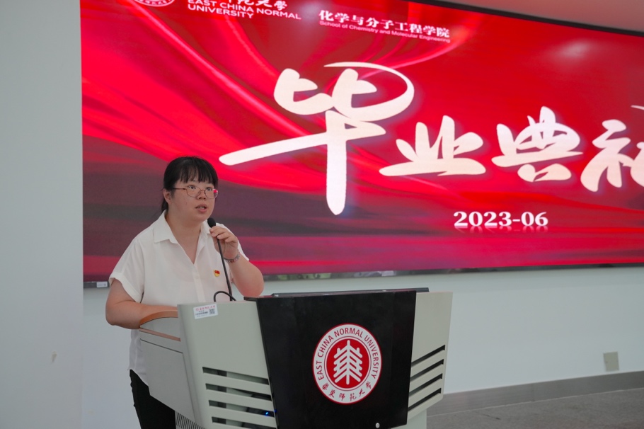 2023届本科非师范班毕业生代表沈珺回顾了四年求学生涯中感受到的化学的奥妙和力量,指出大学生活不仅塑造了学术能力和人际交往,更磨练了意志力和坚韧性。在自己的学习科研道路上,将继续秉持科学的精神,更加努力、更加坚定地追逐梦想。